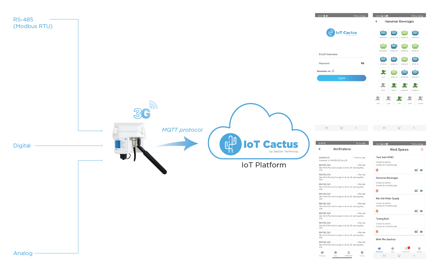 Saigon Technolog vai trò nhà thầu tư vấn lắp đặt kinh nghiệm, giới thiệu giải pháp quan trắc online nước ngầm và ứng dụng Iot Cactus - Industrial IoT Solutions trong việc điều khiển giám sát nội bộ.