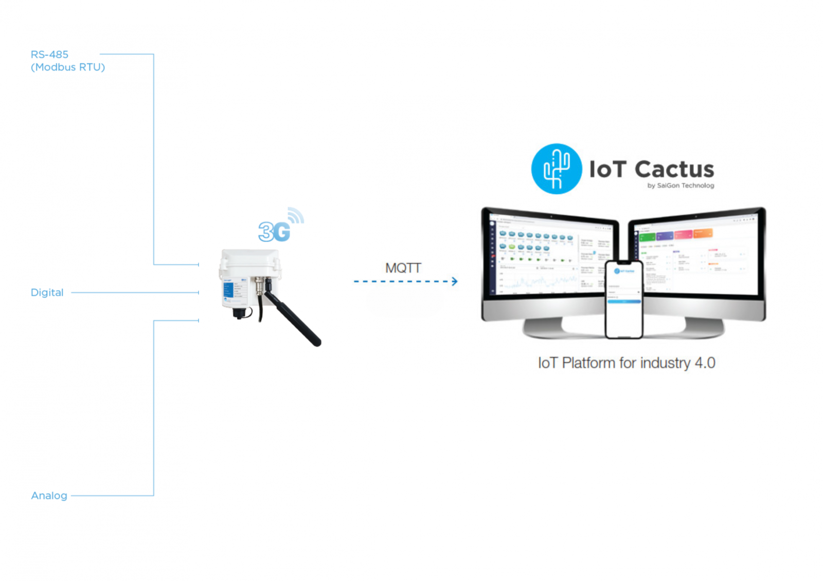 M500M-Q-G-N co khả năng giám sát và điều khiển từ xa bằng giao thức MQTT qua nền tảng IoT Cactus của Saigon Technolog.